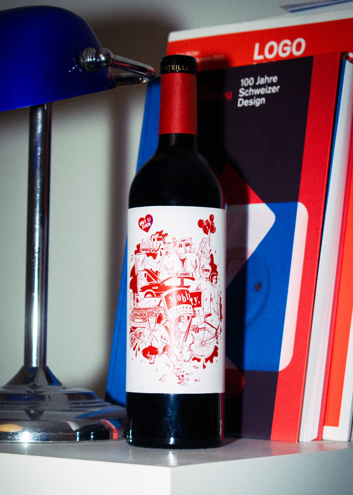 For their 25th anniversary year of Mobility carsharing, I had to create an illustartion for the employee gifts. Such as jumpers and wine labels.